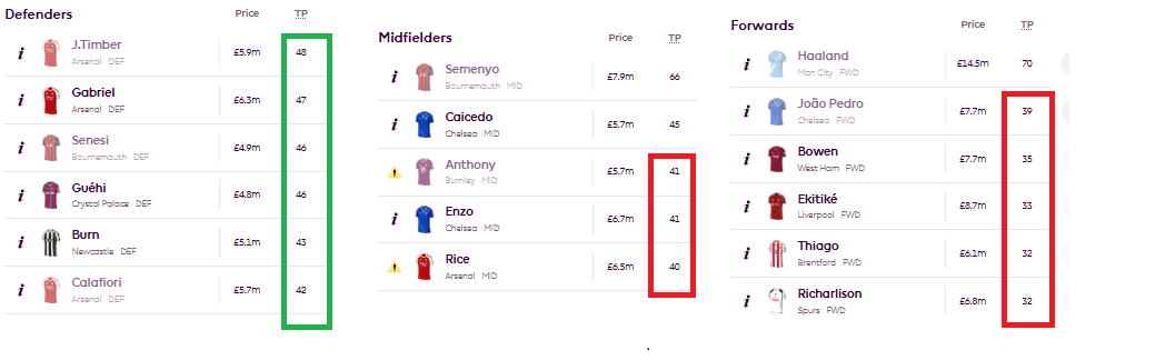 - But in addition, we have coincided with a separate lack of strong attacking midfielders, either due to injury (Palmer, Saka), and/or poor form (Salah, Watkins), and/or diluted distributed returns (Liverpool players).