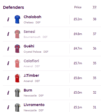 - If things do change drastically later, the "four point" cost of transferring Calafiori/Timber out if need be seems reasonable in exchange for the prospective reward: Calafiori/Timber (35 pts each) are now almost double the points of Saliba (17 pts) right now and nearly 1.5X the points of Gabriel (25 pts).