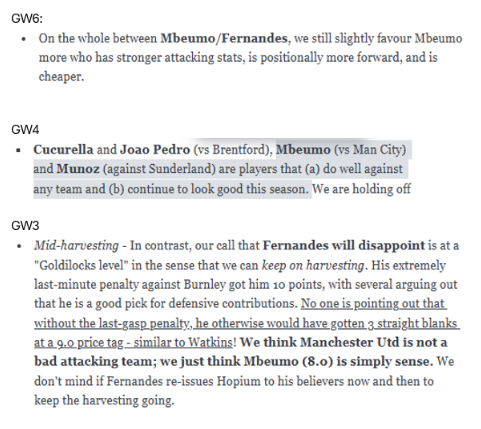 Our long-held thesis that Mbeumo is a much better pick than Fernandes (see extracts from our deep dives for GW3, GW4, GW6) is surely validated now ...